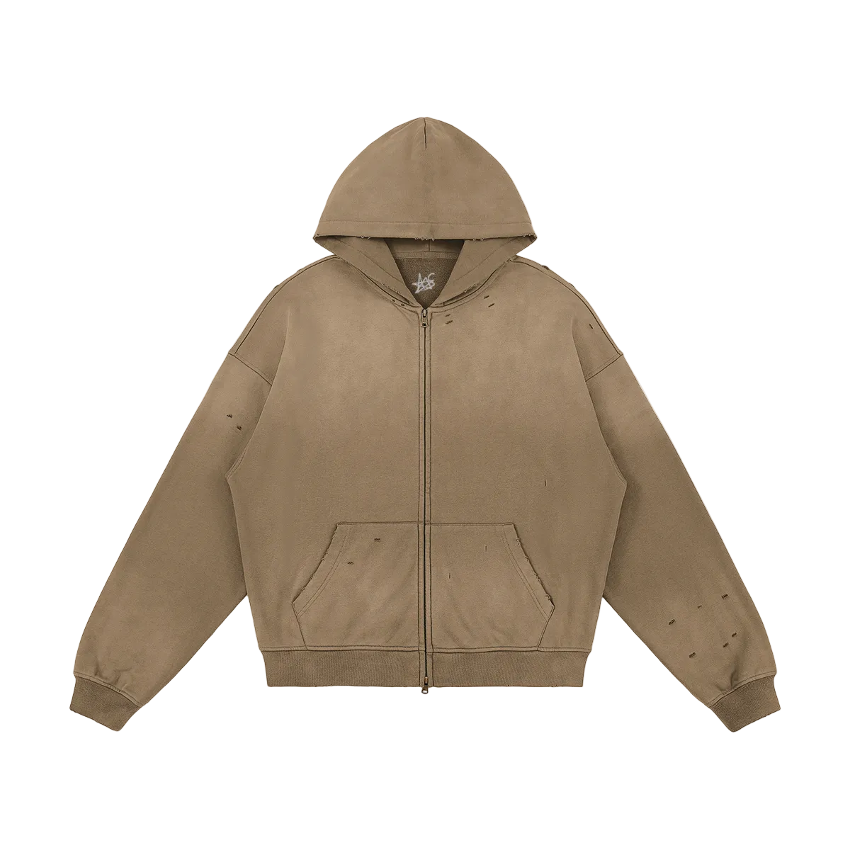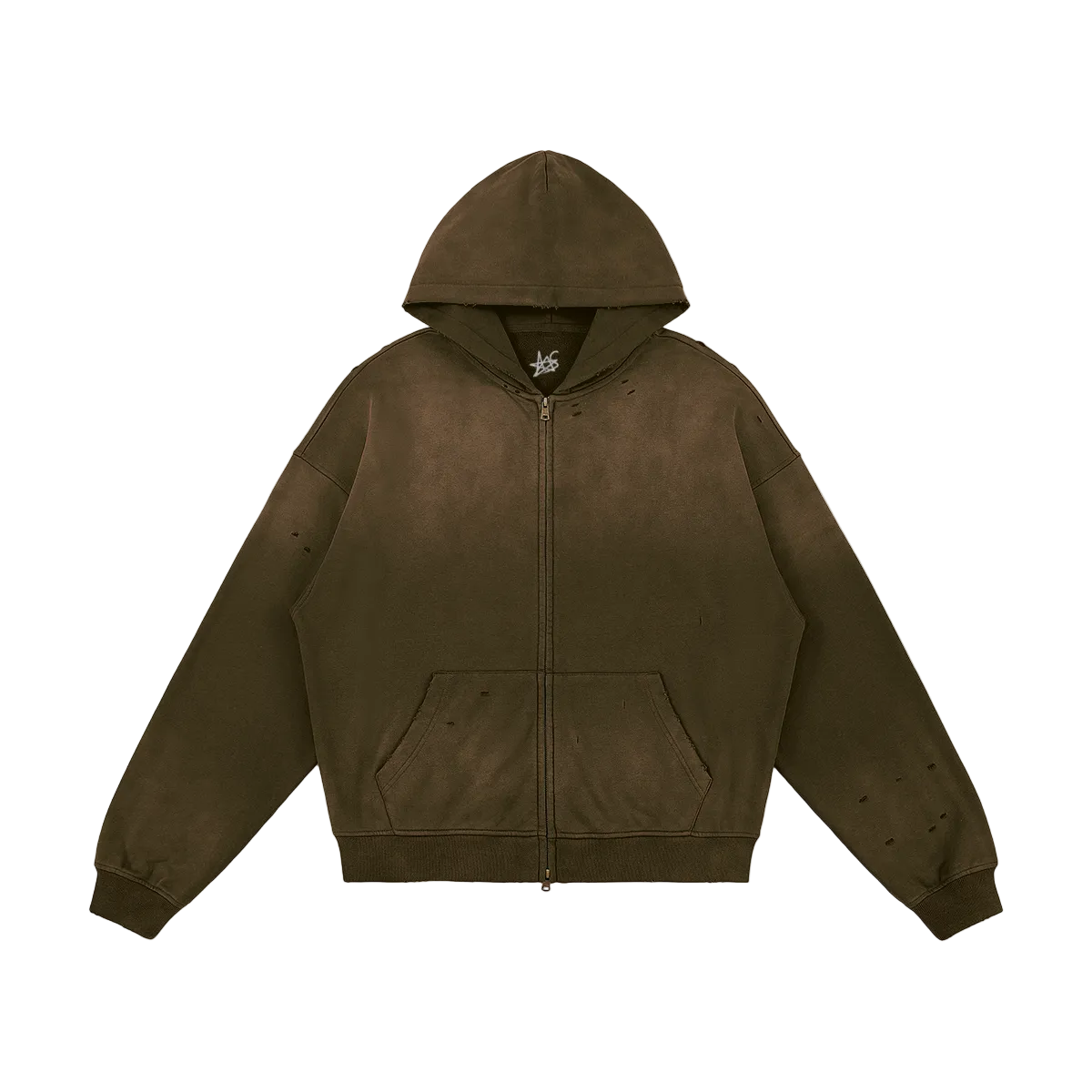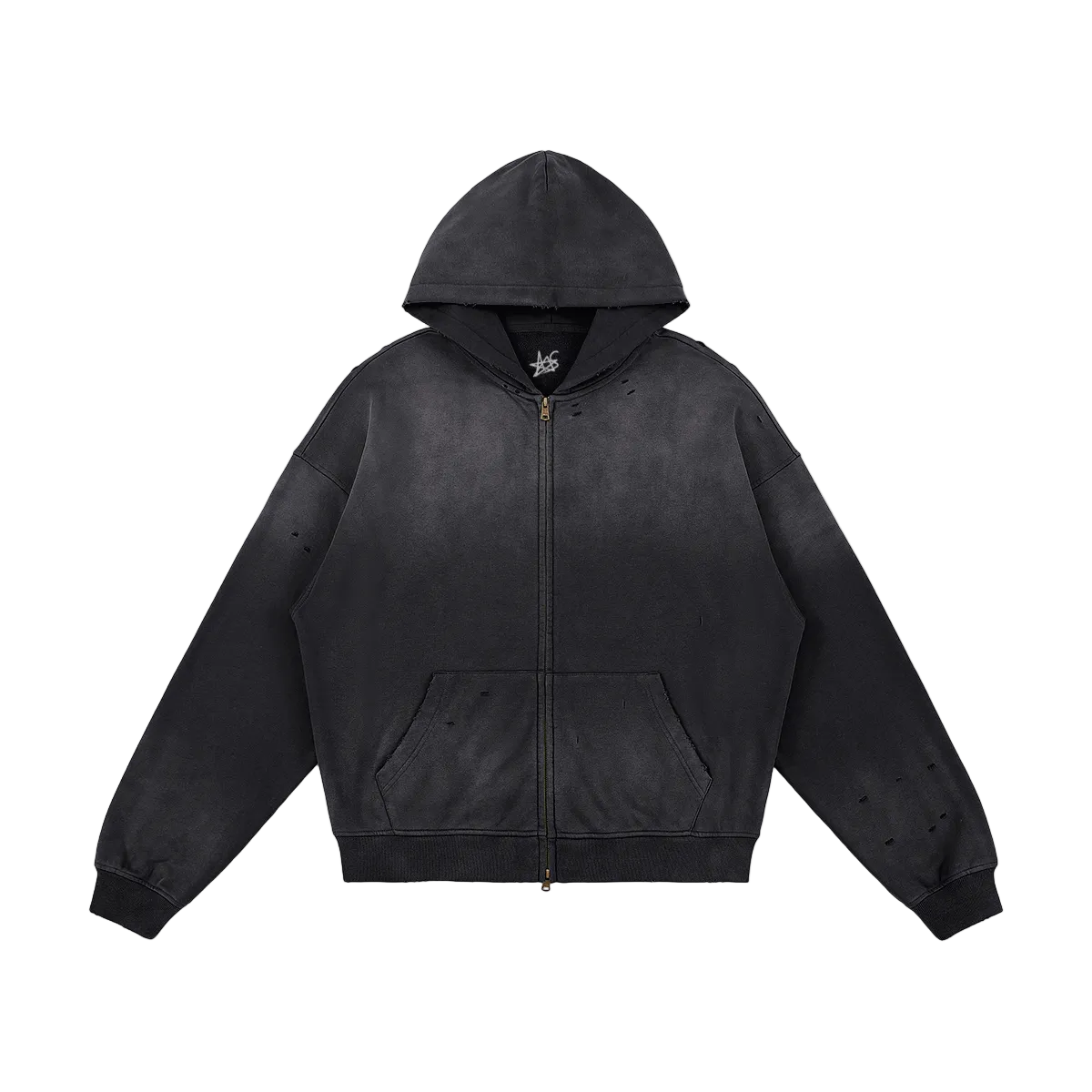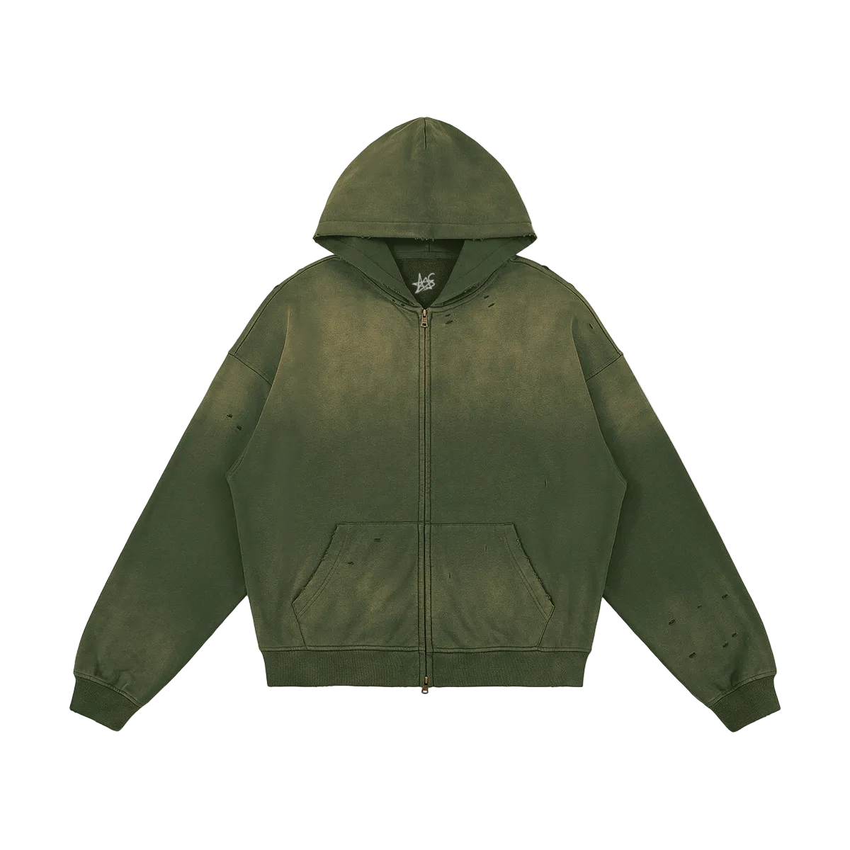 Crafted in 100% cotton, this unisex sun-faded distressed full-zip hoodie channels a vintage streetwear vibe. The sprayed fade wash and subtle worn-in details create a grunge-inspired look, perfect for oversized layering, casual outfits, or statement street style that blends comfort with a bold, lived-in edge. Wash on the reverse side with neutral detergents. Do not soak, expose to the sun, and bleach. Iron, steam, or tumble dry at low temperature(max 30℃ or 90℉).