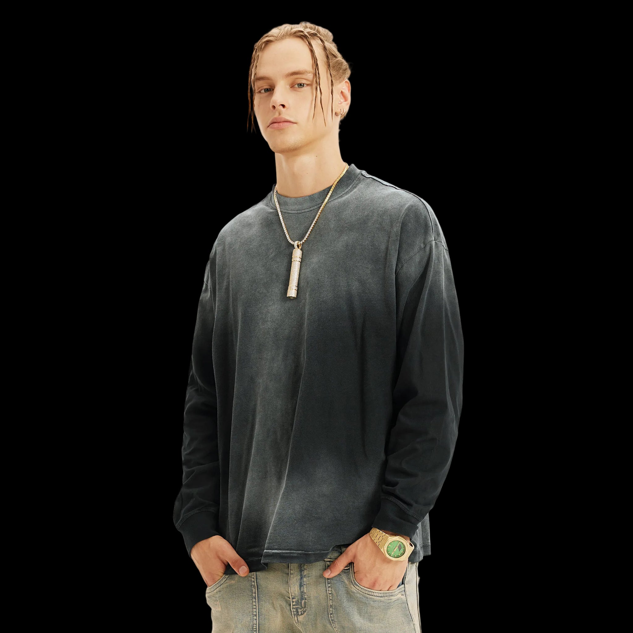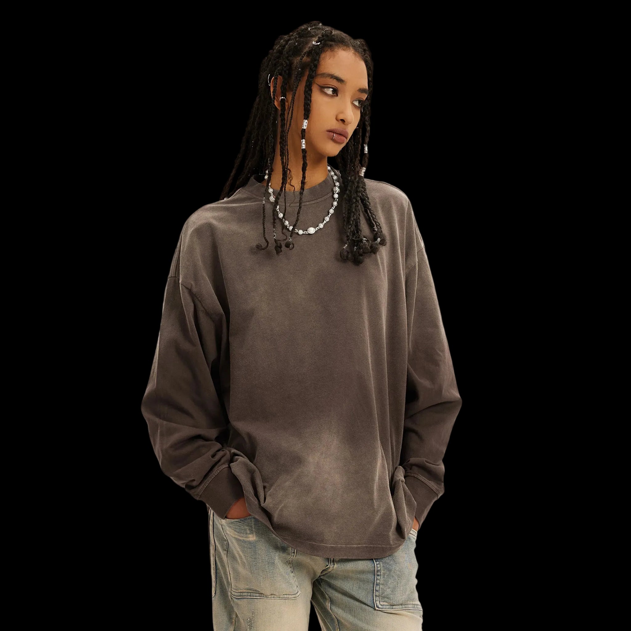 Produced in soft, breathable cotton fabric, this stylish top is the perfect solution for any casual setting and lays the foundation of your wardrobe classics. Its smoky sun-faded effect and oversized fit add an effortless street vibe to your OOTD. The sophisticated color scheme makes it easy to layer up or pair with any bottoms.